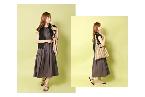 ✔ リネンブレンドストライプ&無地キャミワンピース